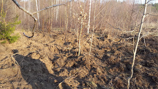 Så här såg det ut igår. Det syns inte lika tydligt på grund av grönskan, men om du ser på ovanstående bild kanske du kan föreställa dig hur det ser ut. Jag hatar verkligen vildsvin. De har förstört så mycket, inte bara markerna jag brukade gå i, utan också gjort så att jag inte längre vågar gå rakt ut i skogen som jag brukade. Inte ens utanför vår egen tomt. En gång har jag blivit attackerad av en sugga och det vill jag inte bli igen.