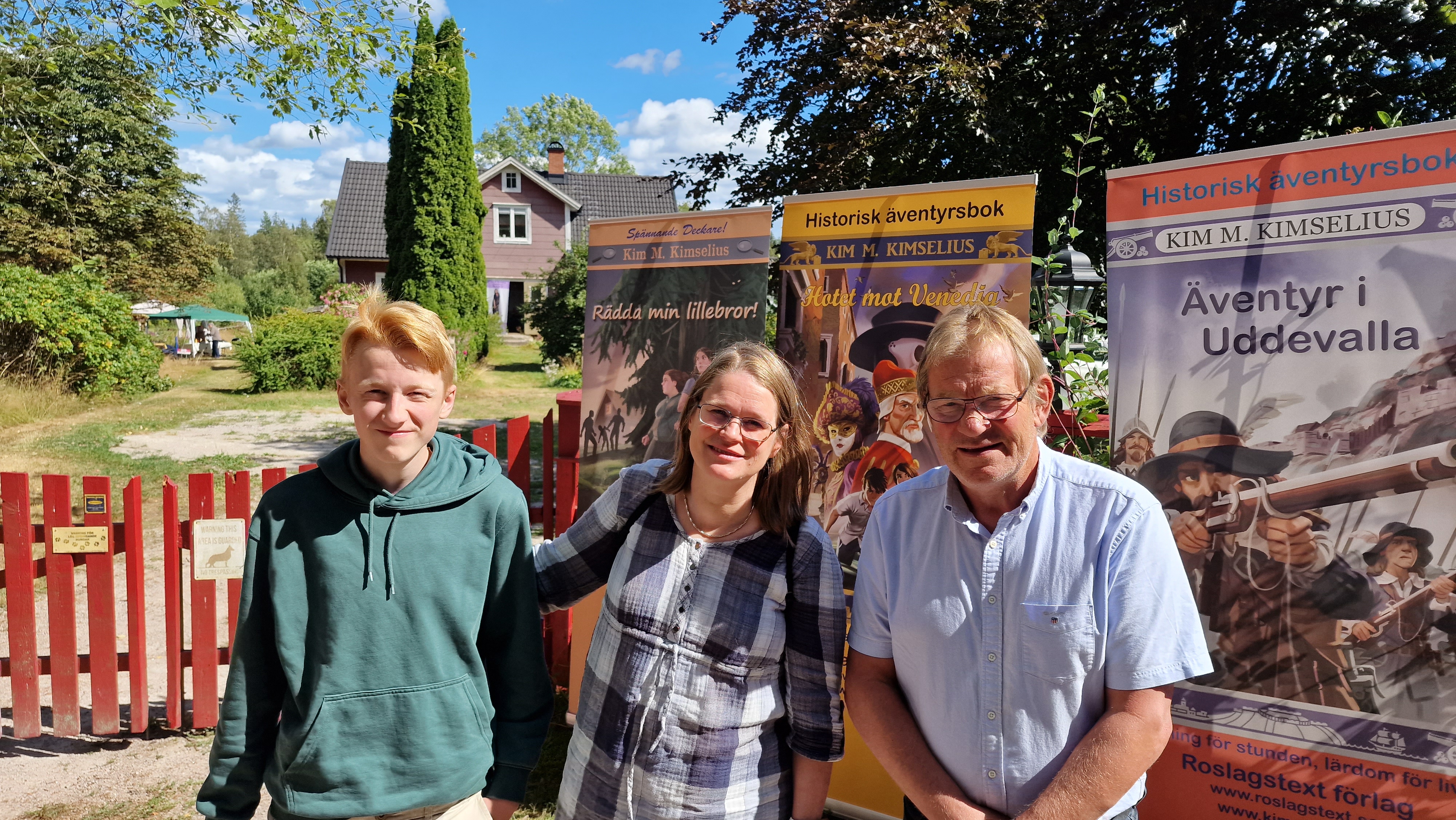 Alla besökare har gått hem, även gästförfattarna. Det är bara familjen Bengtsson, Oscar, Jessica och Hans som är kvar. Självklart ska de ha lite signerade böcker med sig hem till Göteborg. Jag flankeras av mina trötta hundar i soffan.